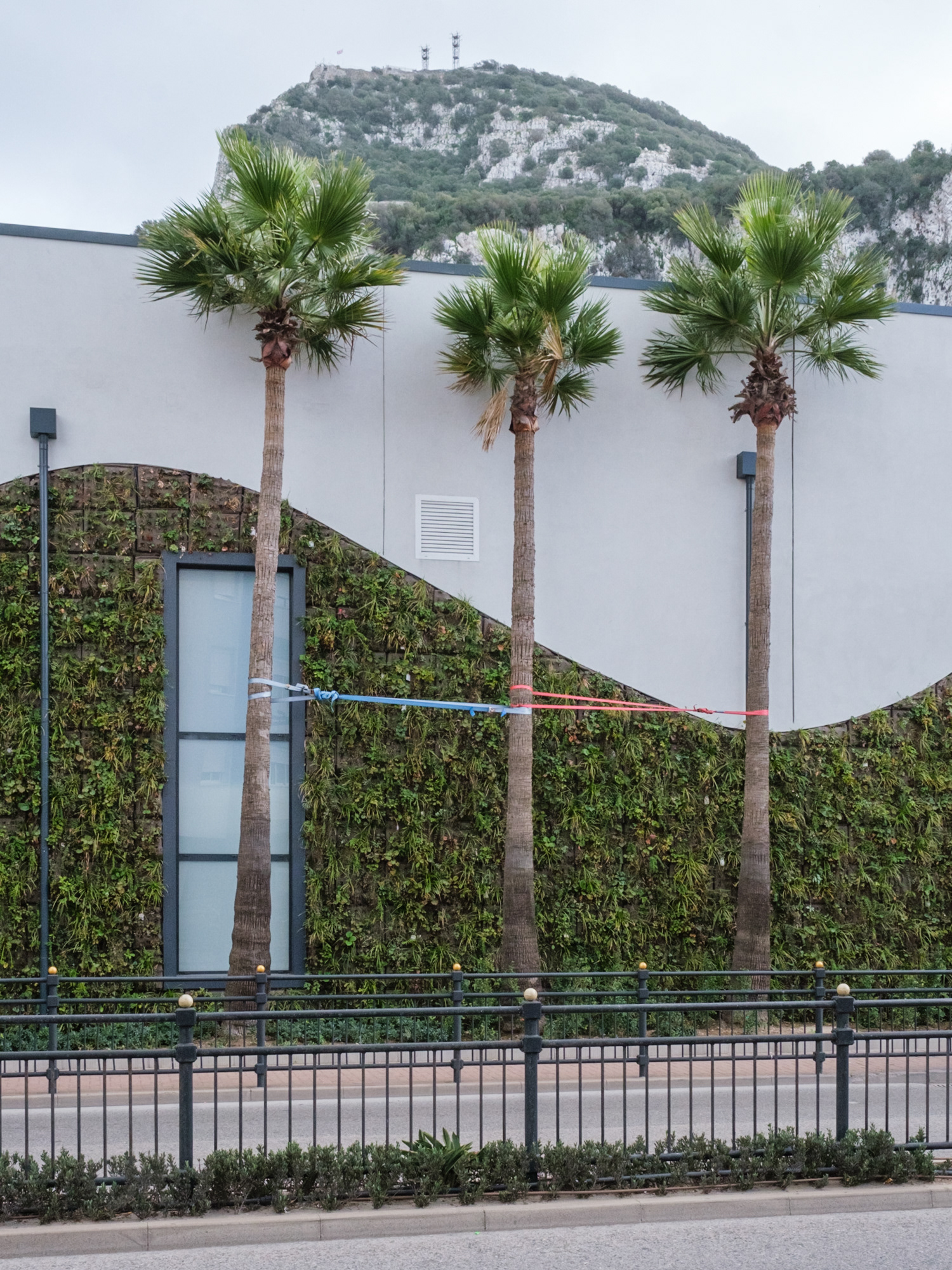 Zurrgurte in den Farben der Union Flag sind zwischen drei Palmen gespannt. Beim Brexit-Referendum stimmte die überwältigende Mehrheit der Bevölkerung Gibraltars für den Verbleib in der Europäischen Union, doch das britische Territorium muss sich trotzdem auf den Austritt vorbereiten.