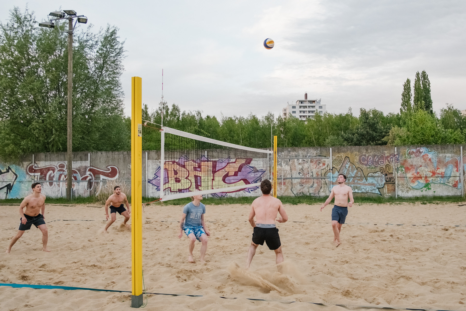 Der Beach Mitte Volleyballplatz liegt direkt an der ehemaligen Hinterlandmauer, die die Grenze zwischen Ost- und Westberlin markierte.