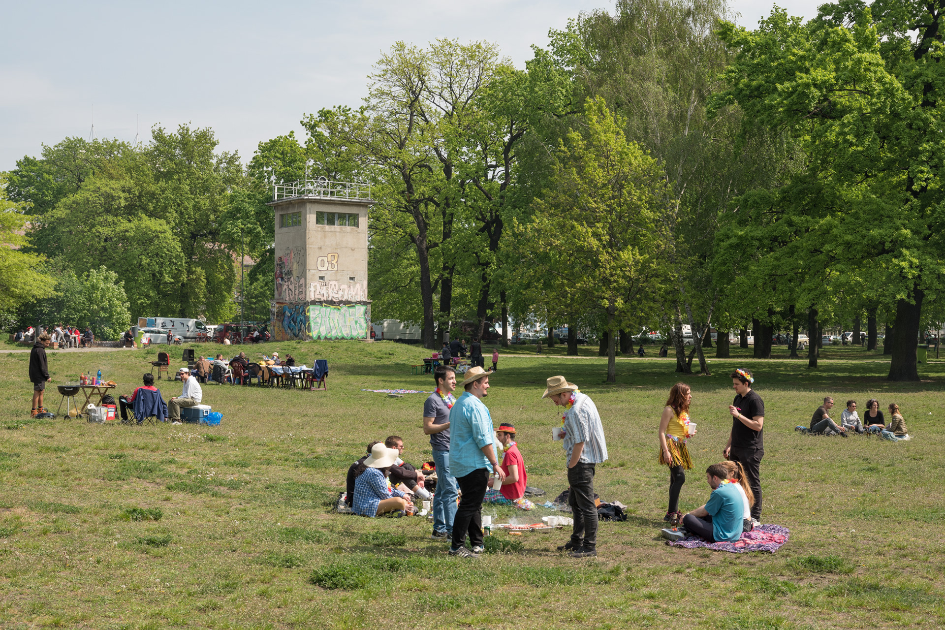 Der Wachturm im Schlesischen Busch ist einer der letzten erhaltenen Wachtürme Berlins. Die Wiese des ehemaligen Todesstreifens ist heute ein beliebter Grillplatz.